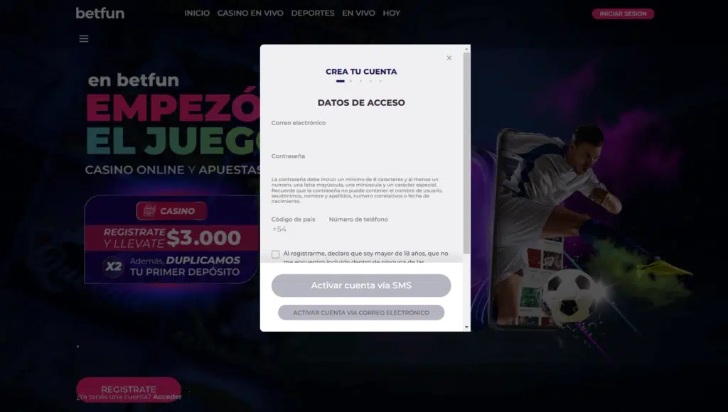 Para acceder a nuestra plataforma, los usuarios necesitan dirigirse al sitio oficial www.betfun.bet.ar. El botón “Iniciar sesión” se encuentra ubicado en la esquina superior derecha de la pantalla principal. Una vez presionado, aparece el formulario de acceso con campos específicos.